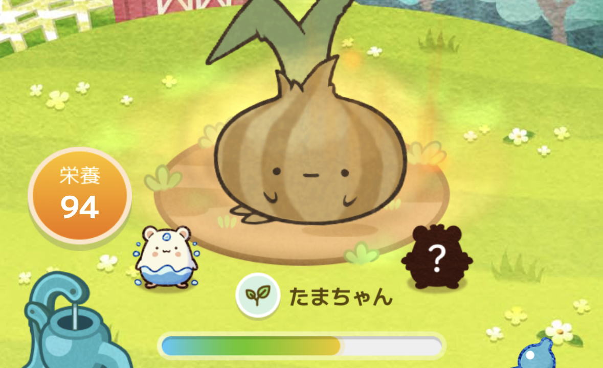 水をあげると「次のレベルまであと〇%」が徐々に減っていき、レベルが上がって大きくなり最終レベルの収穫に近づきます。