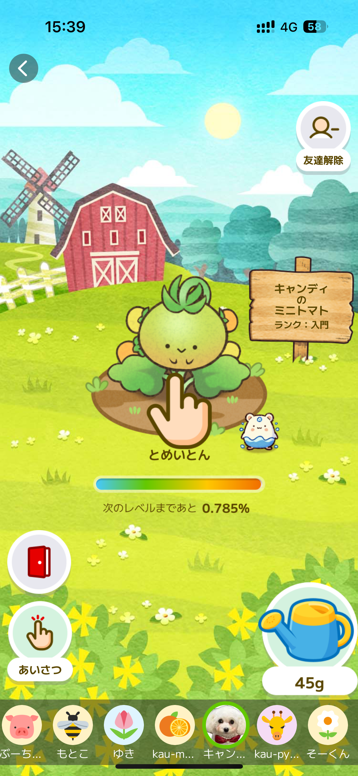 自分でのこまめな水やり+クエストでの水や肥料の獲得に加え、さらに早く収穫に近づくのに必要なのは友達。