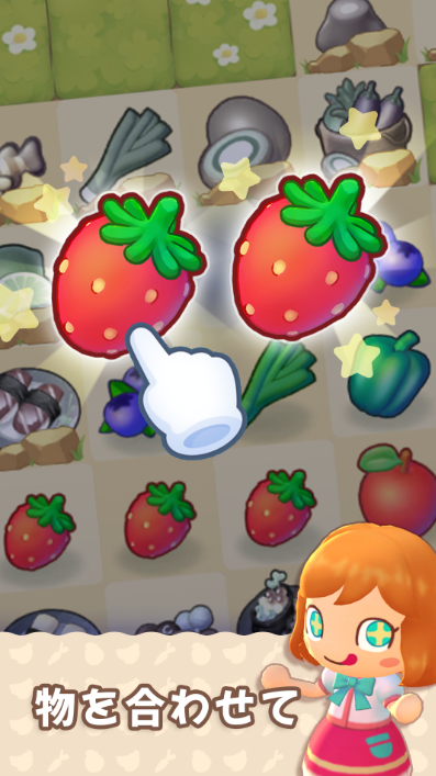 画面左上のバスケットをタップすると、野菜やスイーツがぽこぽこ出てきます。