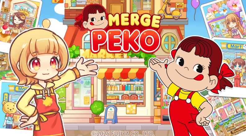 『マージペコ:ペコちゃん、ガチかわ〜!』は、ペコちゃんのアイテムをマージしながら、古びた商店をリフォームし、拡張していくゲームです。